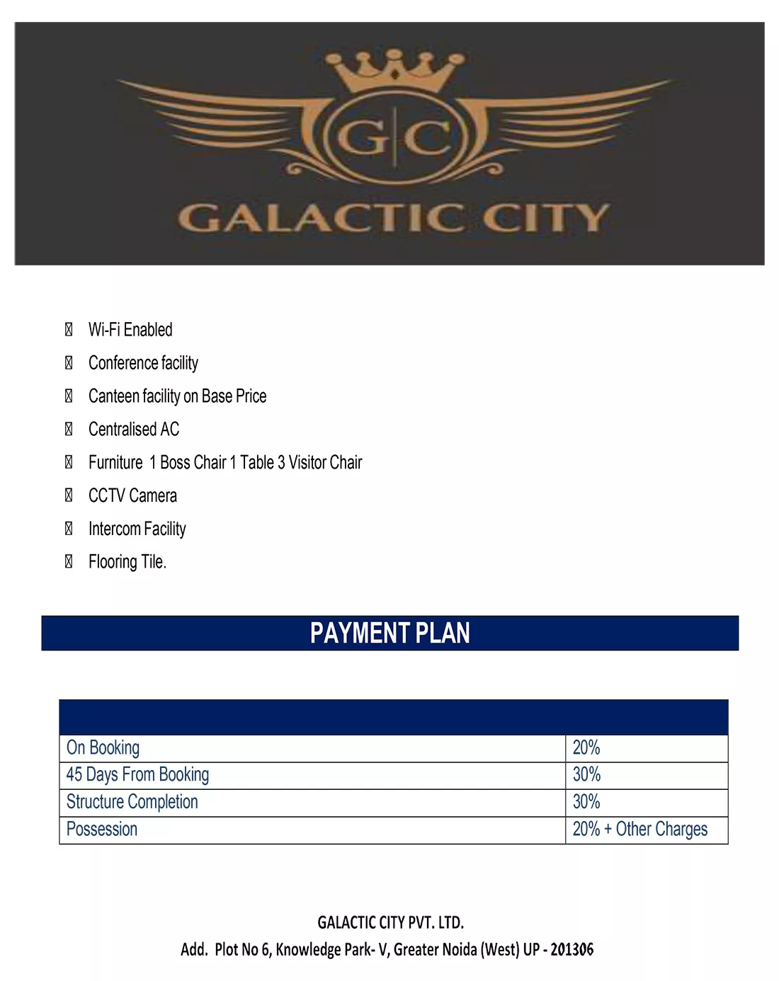 The most luxurious side of Galactic City Studio Apartments in the commercial prosperity of Knowledge Park 5, Greater Noida is the best location where every real estate seekers and buyers want to fulfill their dream. It will be a limitless world of commercial prognostication with extraordinary professionals, doctors, recruitment authorities, and several financial, educational, and health institutions that will thrive lucrative commercial life and would make investments a key to your success in the above field of excellence including BPOs, KPOs, Data Centers, Clubs, Sales & Marketings, etc. The project offers a business life enhanced by first-rate facilities, modern furnishings, and a convenient location. Major educational institutions, medical facilities, retail centers, and transportation networks are all conveniently close to the residents. Nestled in the valley of green & clean yet pollution-free palace of commerce Galactic City is seamlessly connected to Delhi Metro Stations, Airports, etc. Being close to the Google Data Center in Greater Noida West, Galactic City is easily reachable from famous social and commercial landmarks like Gaur Chowk, City Center, DND, FNG, etc.
