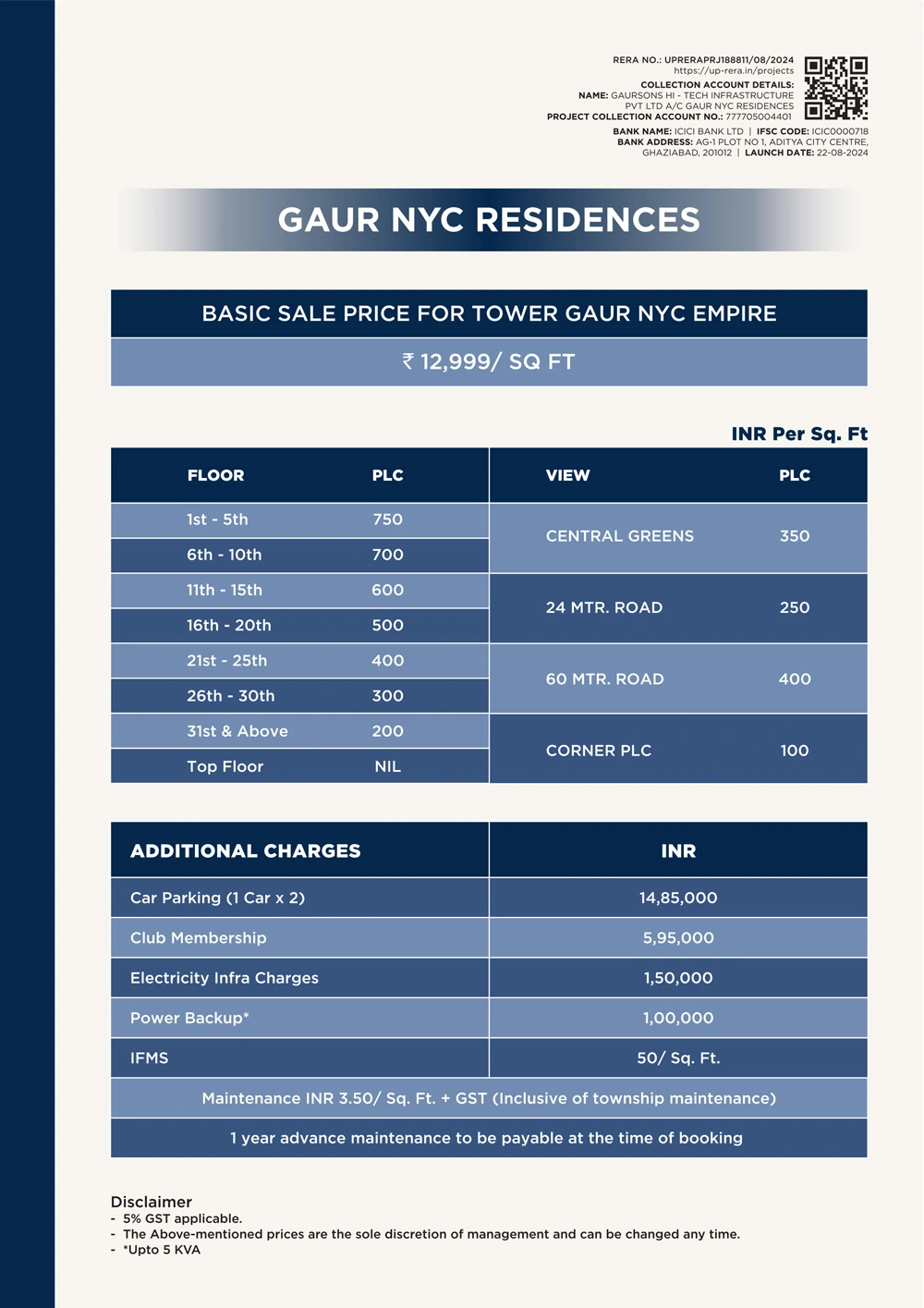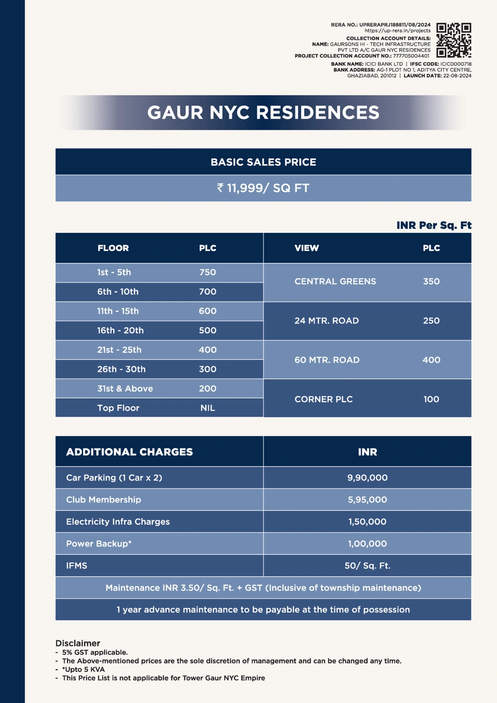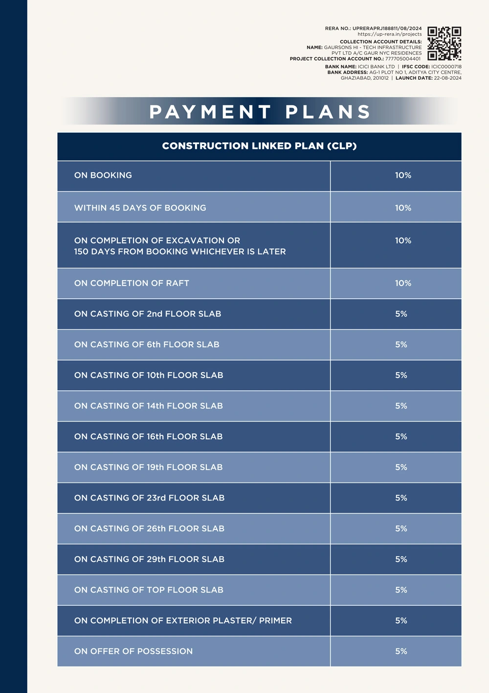Ans: The project name Gaur NYC Residences is developed by Gaursons Hi-Tech Infrastructure Pvt. Ltd., a reputed name in Indian real estate.